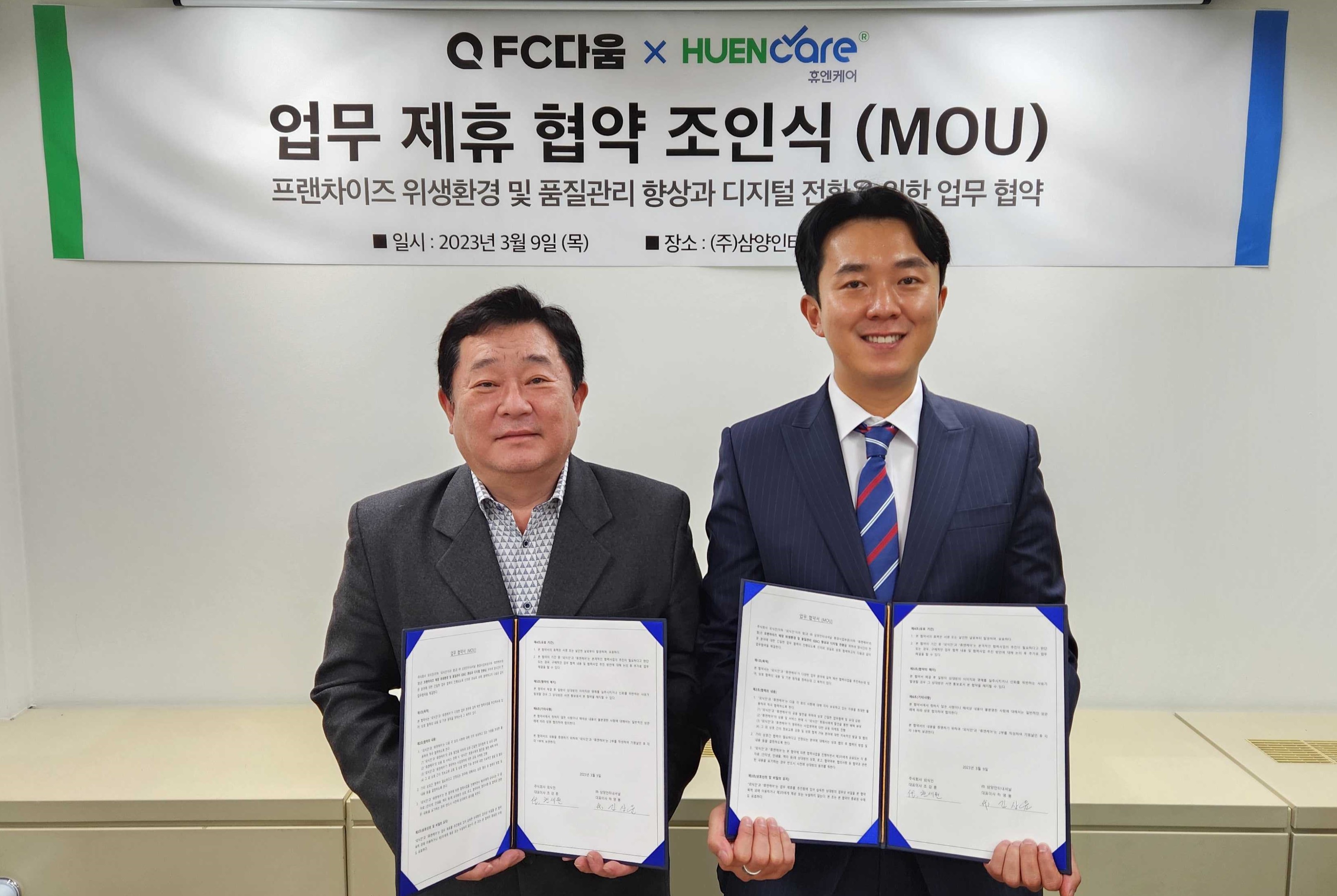 프랜차이즈 가맹본부의 디지털 전환(Digital Transformation)을 선도하는 가맹관리 솔루션 앱 ‘FC다움’이 지난 9일 휴엔케어와 업무협약을 체결했다고 10일 밝혔다.